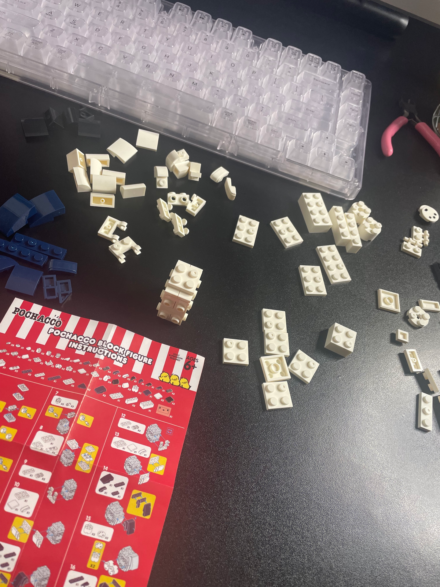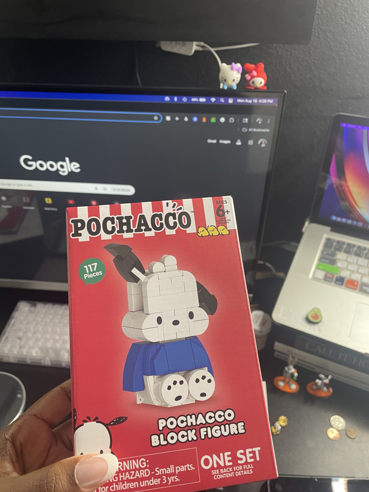 9:28 PM, desk light low, and the day finally winding down. Tonight’s reset is not skincare or tea — it is lining up the little Sanrio figures that sit on my desk. Pochacco staring back at me makes the end of a long day feel less serious.